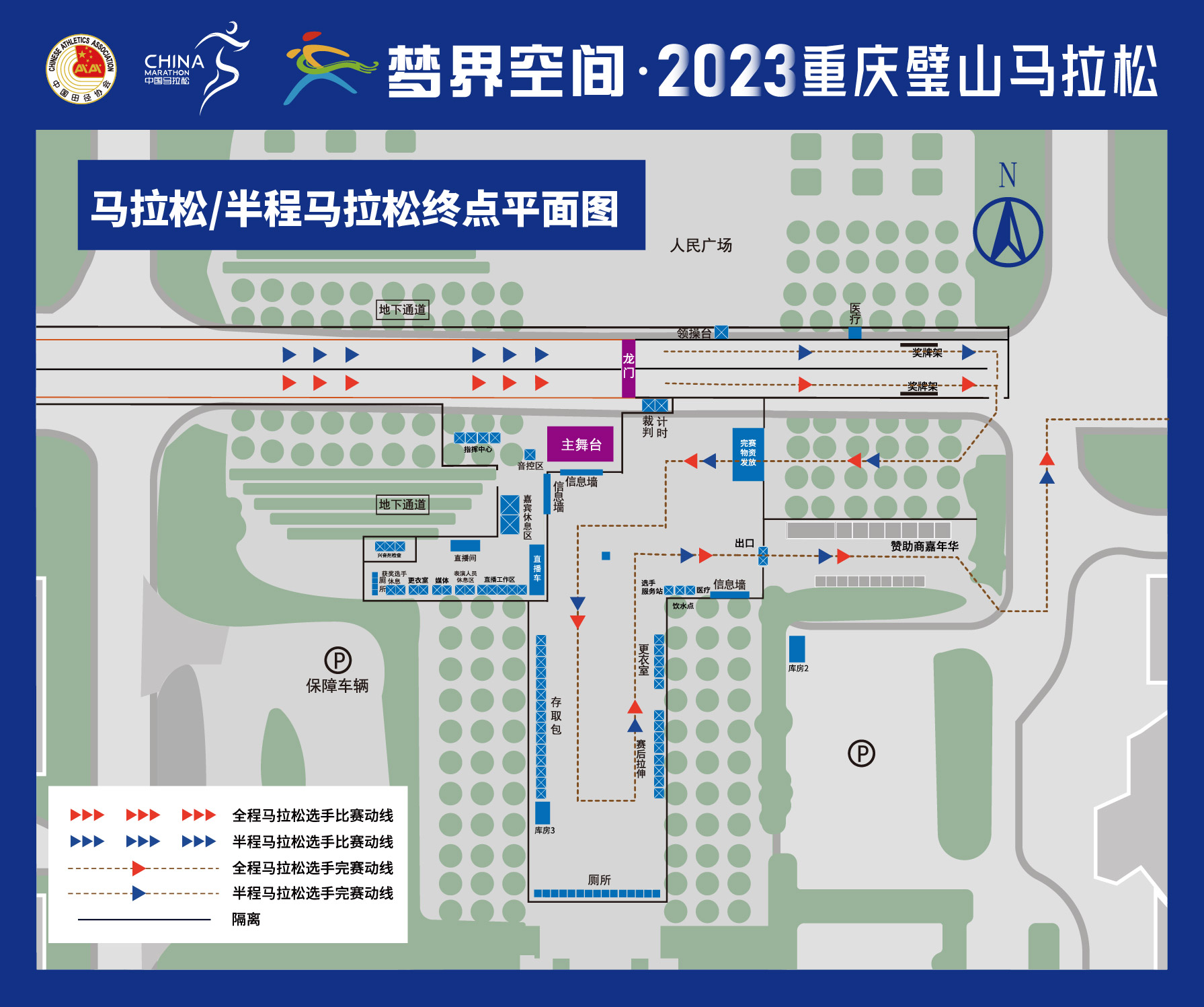 终点:璧山区东岳广场(马拉松和半程马拉松)