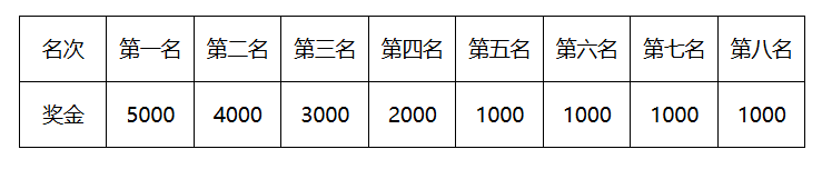 竞速跑和挑战跑每个组别奖励前8名,奖金一览表如下(单位:元/人民币,均为税前金额):